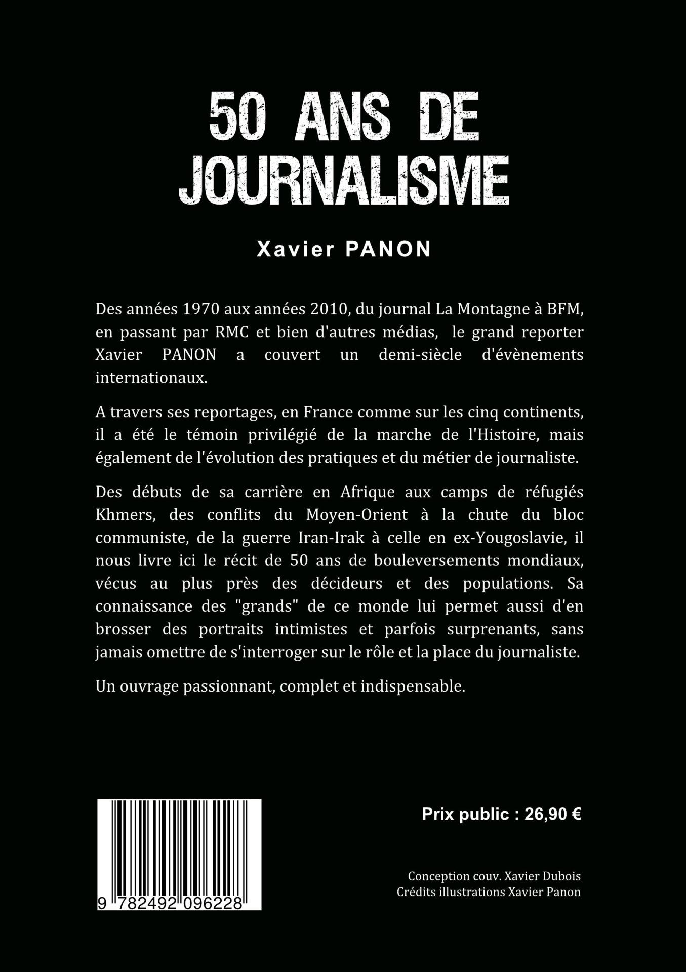 Des années 1970 aux années 2010, du journal La Montagne à BFM en passant par RMC et bien d'autres médias, le grand reporter Xavier Panon a couvert un demi-siècle d'événements internationaux. A travers ses reportages sur les 5 continents, il a été le témoin privilégié de la marche de l'Histoire, mais également de l'évolution des pratiques et du métier de journaliste. Des débuts de sa carrière en afrique aux camps de réfugiés khmers, des conflits du Moyen-Orient à la chute du bloc communiste, de la guerre Iran-irak à celle en ex-Yougoslavie, il nous livre ici le récit de 50 ans de bouleversements mondiaux, vécus au plus près des décideurs et des populations. Sa connaissance des "grands" de ce monde lui permet aussi d'en brosser des portraits intimistes et parfois surprenants, sans jamais omettre de s"interroger sur la place et le rôle du journaliste. Un ouvrage événement, passionnant et indispensable.