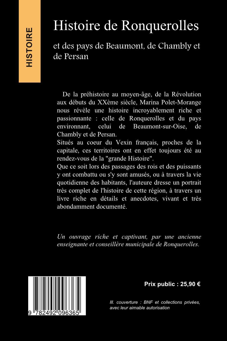 De la préhistoire au moyen-âge, de la Révolution aux débuts du XXème siècle, Marina Polet-Morange nous révèle une histoire incroyablement riche et passionnante : celle de Ronquerolles et du pays environnant, celui de Beaumont-sur-Oise, de Chambly et de Persan.